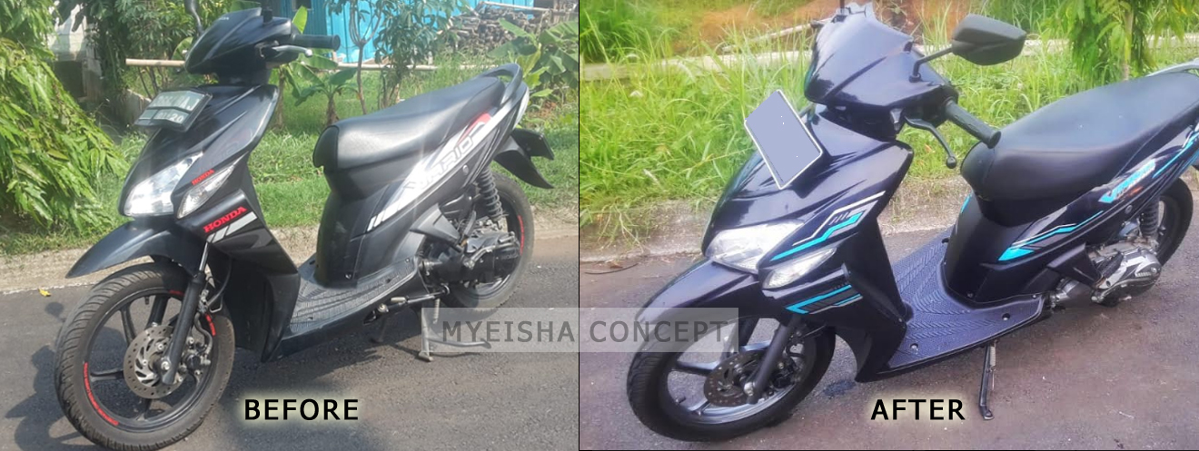 Odi Setiadi alias Abang B-Wokz sang kreator di Bengkel Cat Myeisha Concept bilang, perubahan penampilan motor Honda Vario CW Lama ini sejatinya hanya mencakup perubahan warna dasar menjadi warna hitam grafis minimalis.