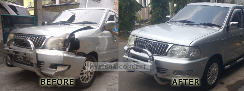 MYEISHACONCEPT. Rasa kebahagian mungkin saat ini sedang memenuhi sanubari Bapak Roni. Bagaimana tidak, roda empat kesayangan yang semula remuk lantaran tabrakan kini sudah tampil seperti sedia kala, bahkan lebih mulus ketimbang kondisi sebelumnya.